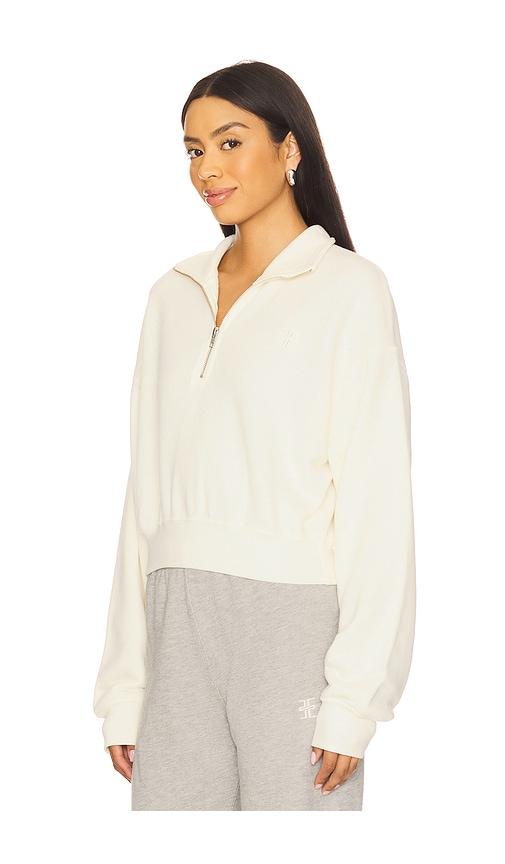 ETERNE CROPPED HALF ZIP SWEATSHIRT IN CREAM.