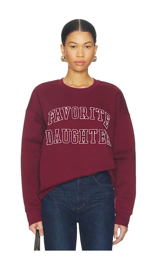 FAVORITE DAUGHTER THE COLLEGIATE EMBROIDERY SWEATSHIRT IN BURGUNDY.
