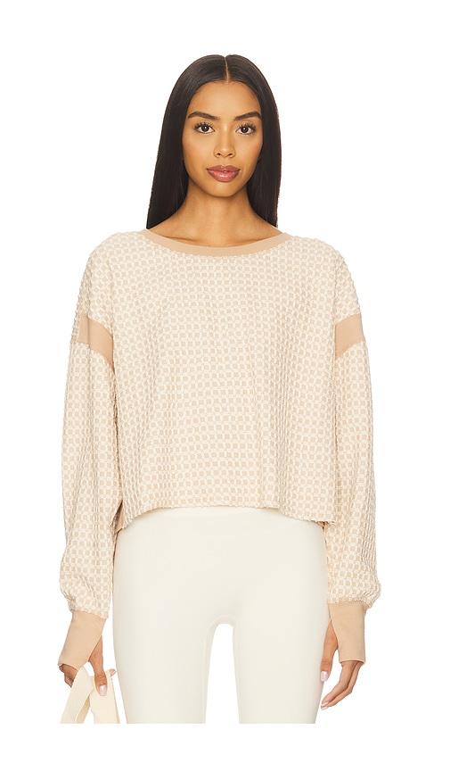 FREE PEOPLE X FP MOVEMENT MY TIME LAYER TEXTURED REVERSIBLE SWEATSHIRT IN SANDY IN BROWN.
