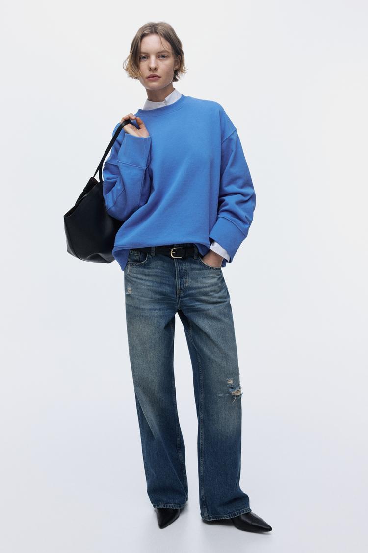 This oversized cotton sweatshirt in a vibrant blue offers a relaxed and comfortable fit with a classic crew neck and long drop-shoulder sleeves. Its waist-length silhouette and minimalist solid design make it an ideal choice for casual outings, loungewear, or travel days. The soft cotton fabric ensures breathable comfort across spring, autumn, and winter seasons, while the pullover style enhances ease of wear. Perfect for pairing with jeans or relaxed pants, this sweatshirt embodies laid-back style with a cozy edge.