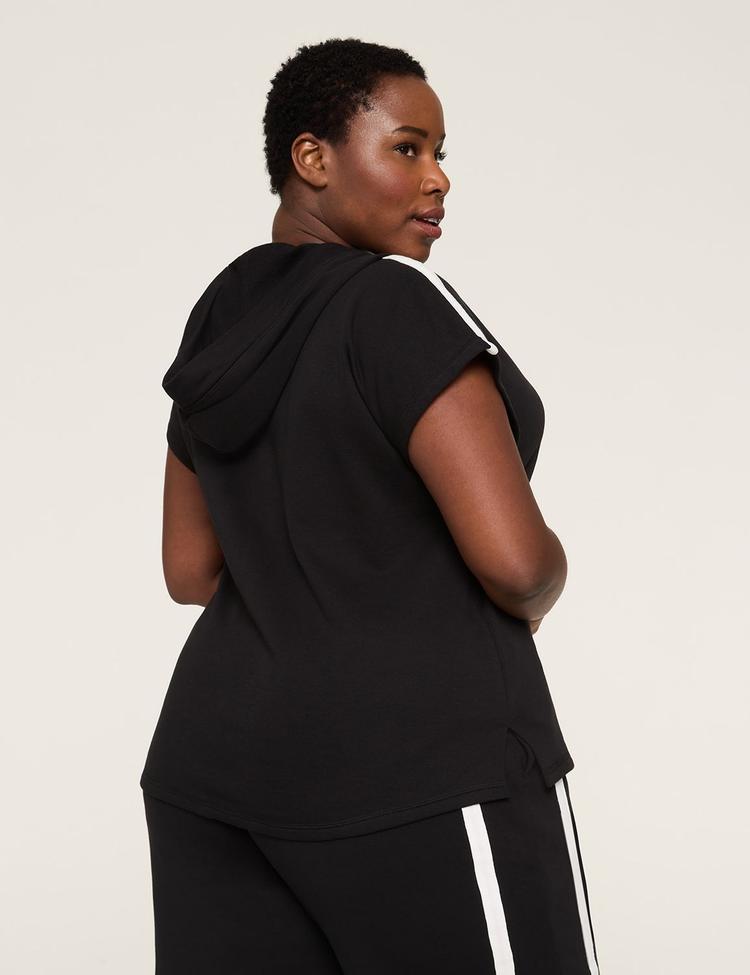 Available in Plus Size This LIVI style boasts classic hoodie comfort to take you through the day, any day. The cozy-soft french terry was made for both movement and chill. FIT: Classic. Designed for curves and a not-too-tight, not-too-loose, just-right fit. Front Length (On Body): 30" FABRIC: French Terry. Ultra-cozy with a not-too-light, not-too-heavy feel.. Machine Wash 60% Cotton/40% Polyester FEATURES: V-neck with hood Short sleeves Side slits at hem for ease and movement Item Number #411082 Imported Plus Size Top ". Plus Size LIVI French Terry Short-Sleeve V-Neck Hoodie, in Black, 22/24, Women's, Lane Bryant
