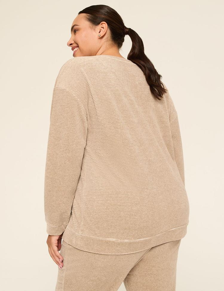 This plus size LIVI Velvet V-Neck Sweatshirt offers a plush-soft velvet fabric with a matte brown finish, ideal for casual and loungewear occasions. It features a classic regular fit with a flattering V-neckline and long drop-shoulder sleeves. The hip-length pullover silhouette is complemented by banded cuffs and hem, adding subtle design details for comfort and style. Perfect for autumn, winter, and spring seasons, this sweatshirt combines cozy texture with easy wearability, making it a versatile choice for travel and relaxed days at home.