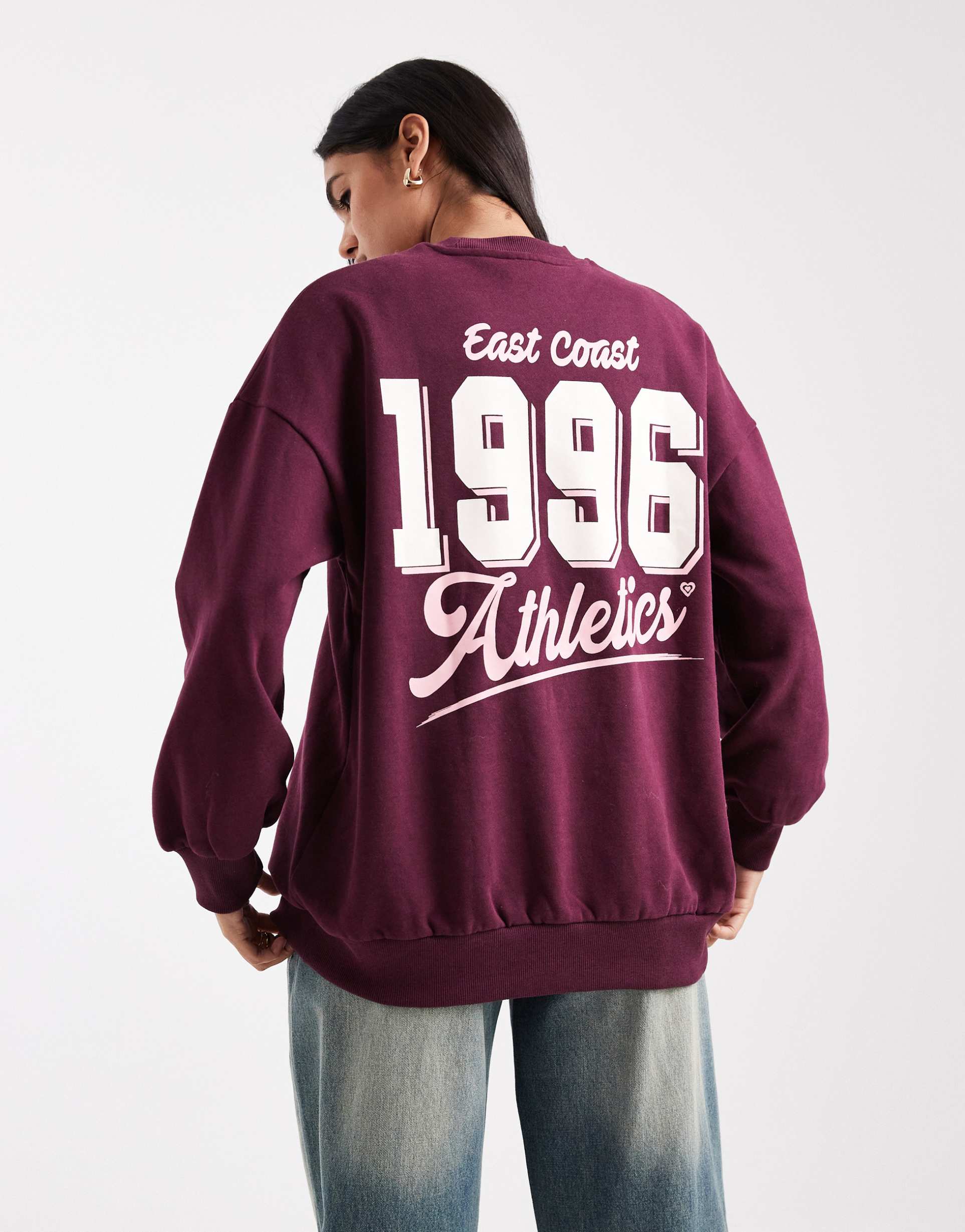MISS SELFRIDGE EAST COAST OVERSIZED SWEATSHIRT IN PLUM