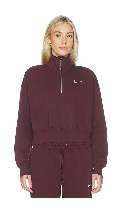 NIKE 1/2 ZIP CROPPED SWEATSHIRT IN BURGUNDY.