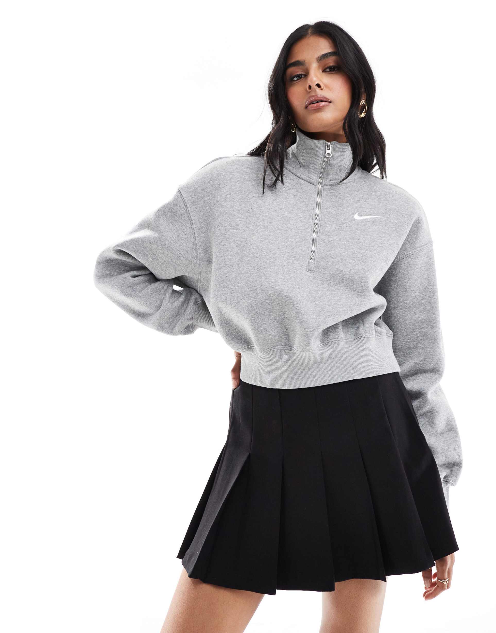 NIKE PHOENIX FLEECE HALF ZIP SWEATSHIRT IN GRAY