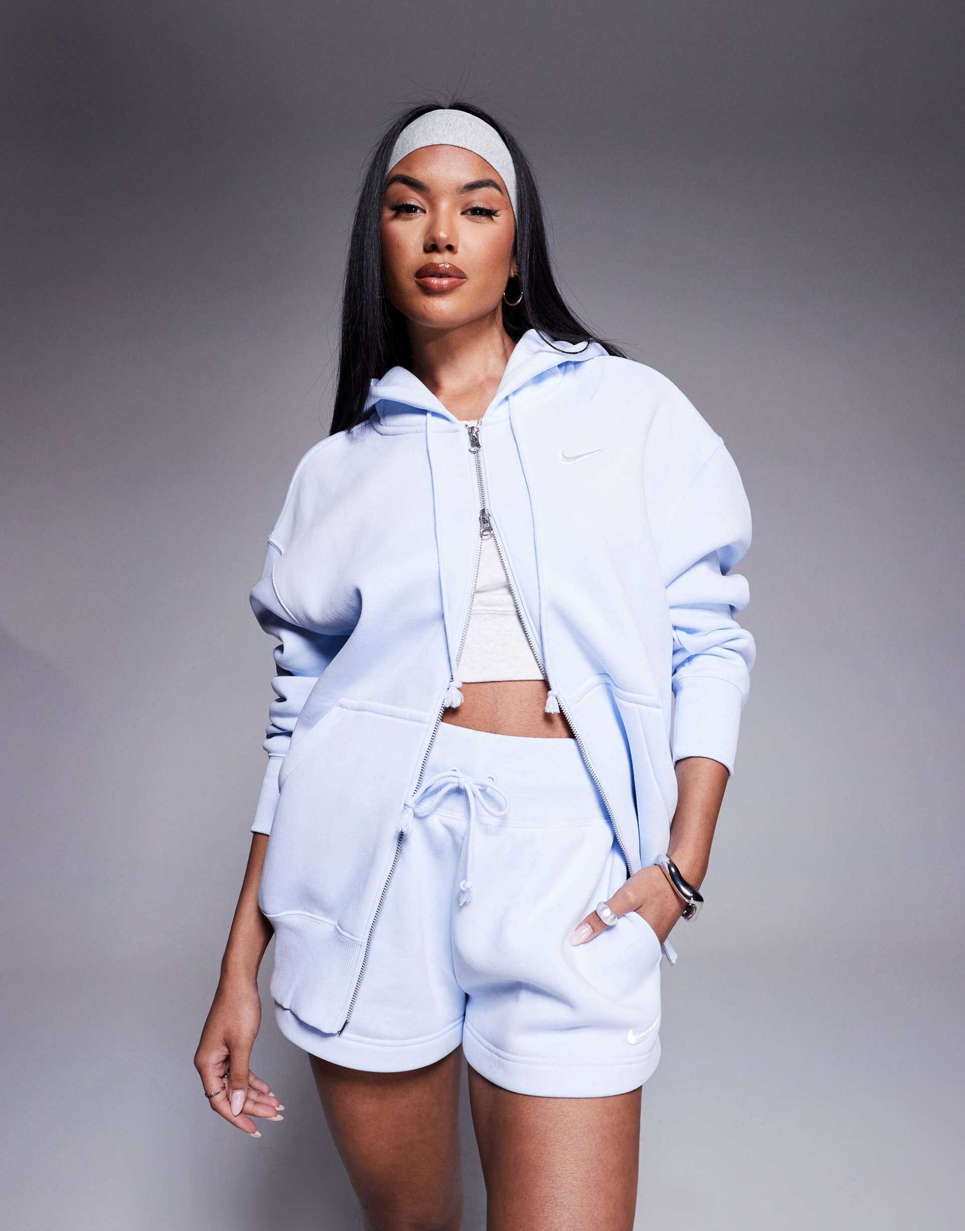NIKE PHOENIX FLEECE OVERSIZED FULL ZIP HOODIE IN LIGHT BLUE