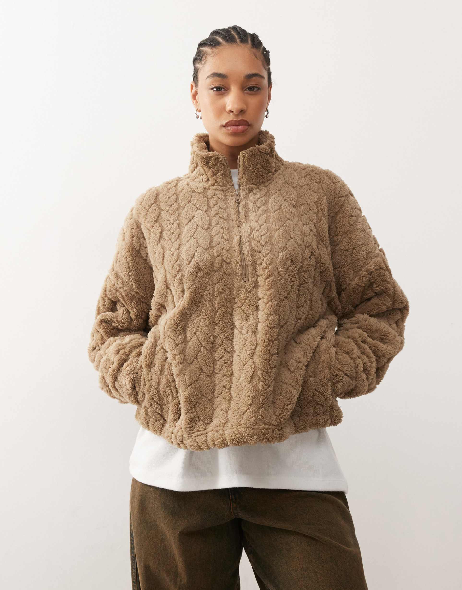 NOISY MAY HALF ZIP FLUFFY FLEECE IN BEIGE