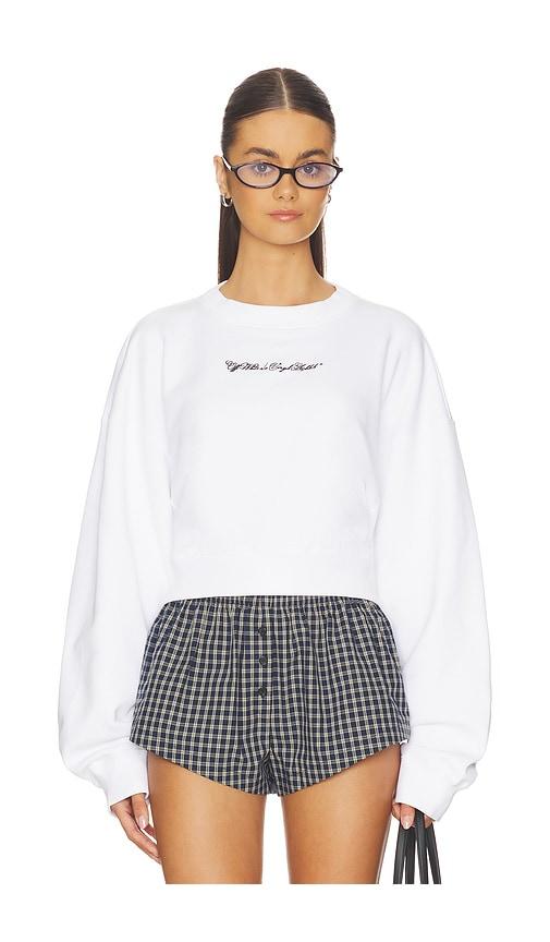 OFF-WHITE EMBROIDERED ARROW SCRIPT SWEATSHIRT IN WHITE.