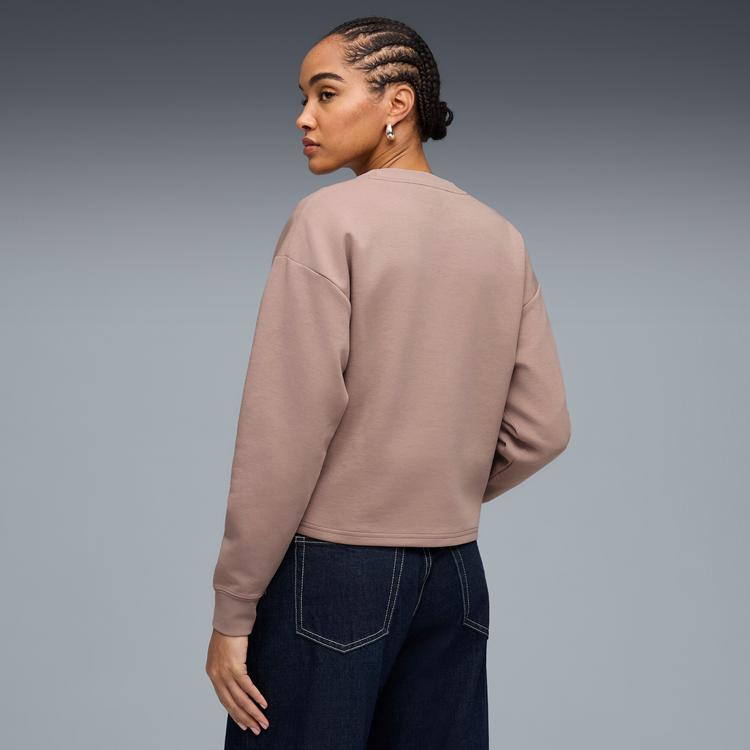 PUMA ELEVATED ESSENTIALS WOMEN'S V-NECK SWEATSHIRT IN BEIGE, SIZE M