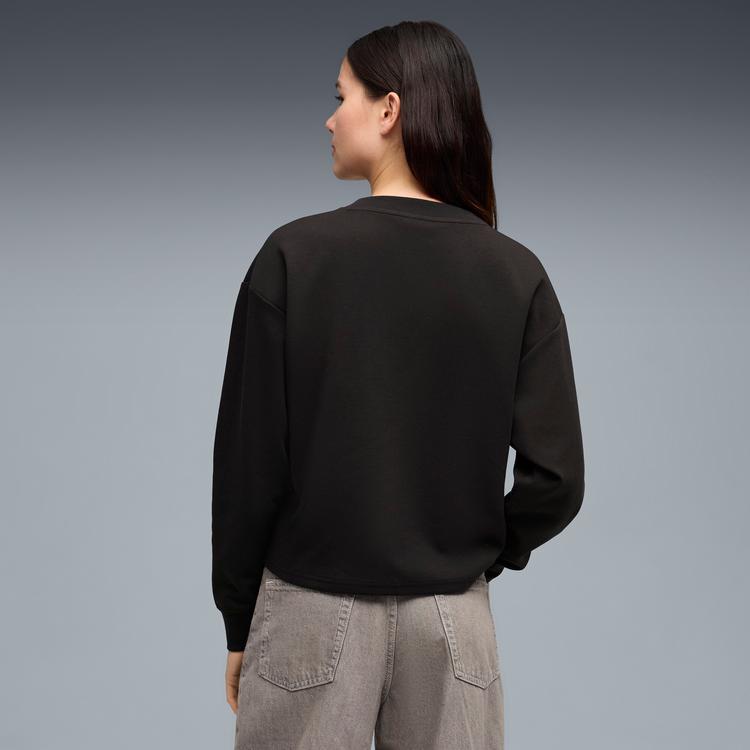 PUMA ELEVATED ESSENTIALS WOMEN'S V-NECK SWEATSHIRT IN BLACK, SIZE XS