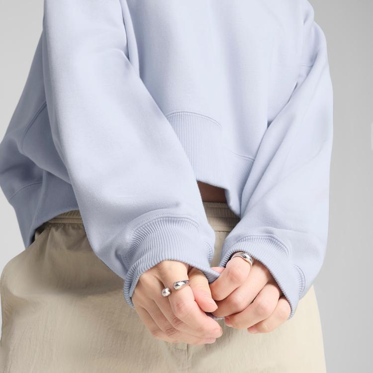 PUMA WARDROBE ESSENTIALS WOMEN'S OVERSIZED CREW NECK SWEATSHIRT IN BLUE, SIZE M
