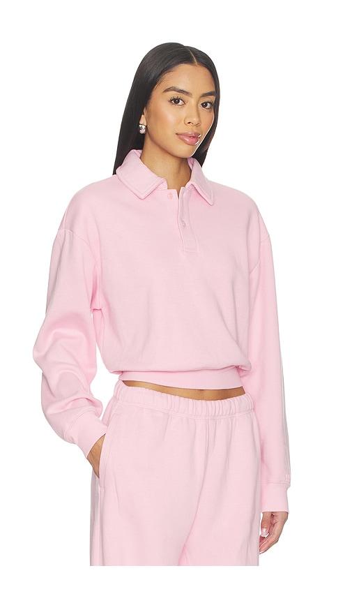 SKIMS COTTON FLEECE POLO SWEATSHIRT IN PINK.