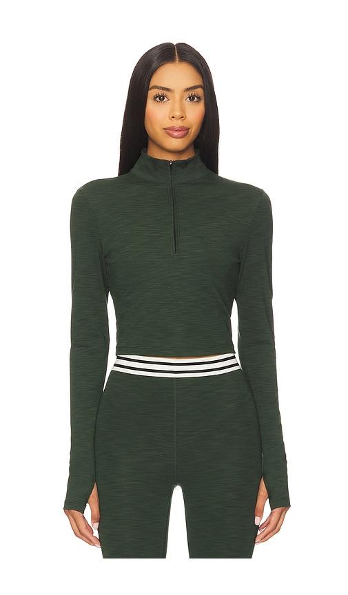 SPLITS59 STEVIE ACTIVE RIB HALF ZIP SWEATSHIRT IN DARK GREEN.