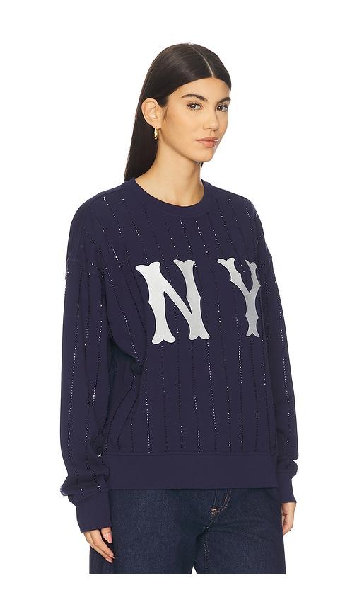 TEREZ X REVOLVE YANKEES GEM PINSTRIPE SWEATSHIRT IN NAVY.