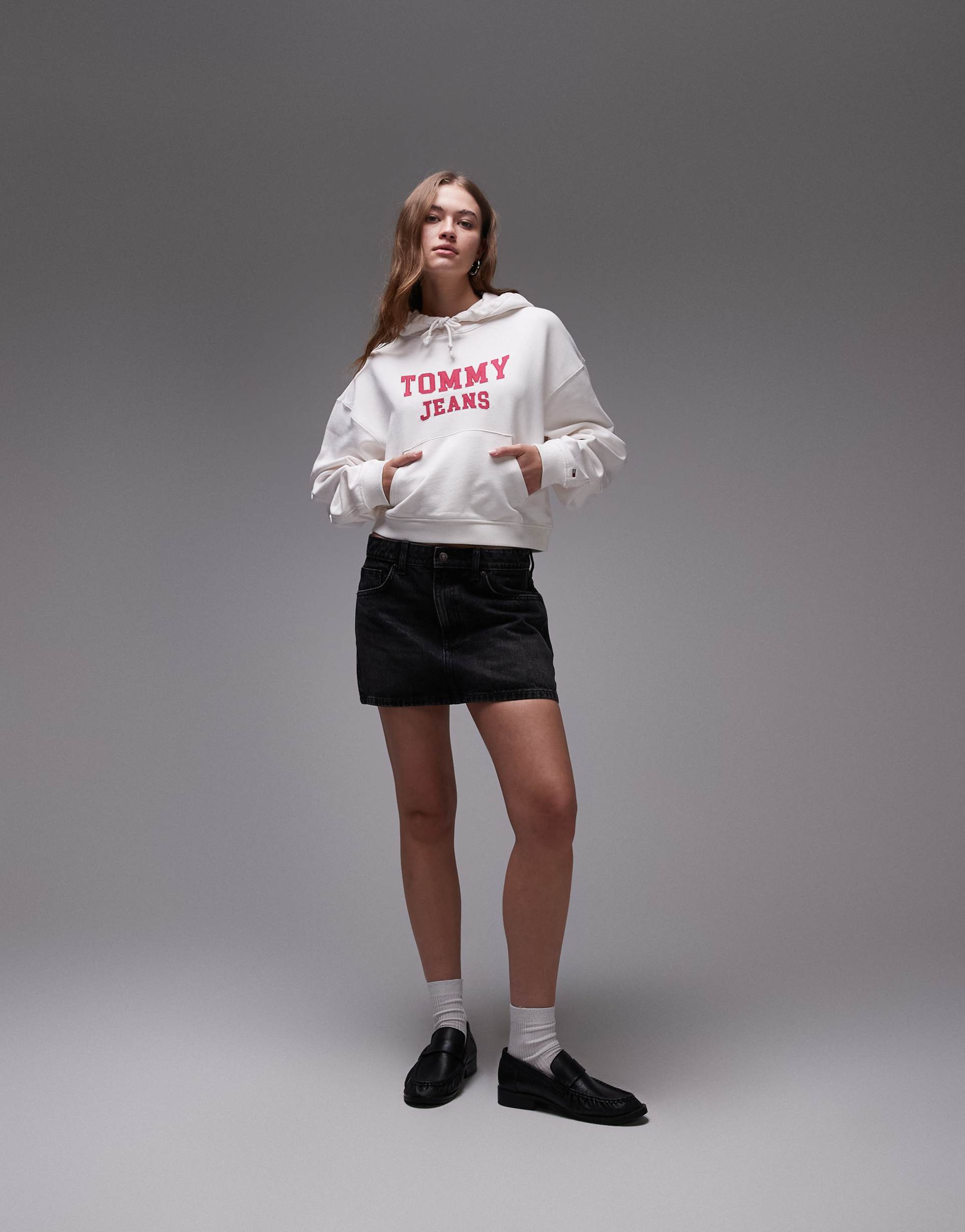 TOMMY JEANS BOXY VARSITY LOGO HOODIE IN OFF WHITE AND RED