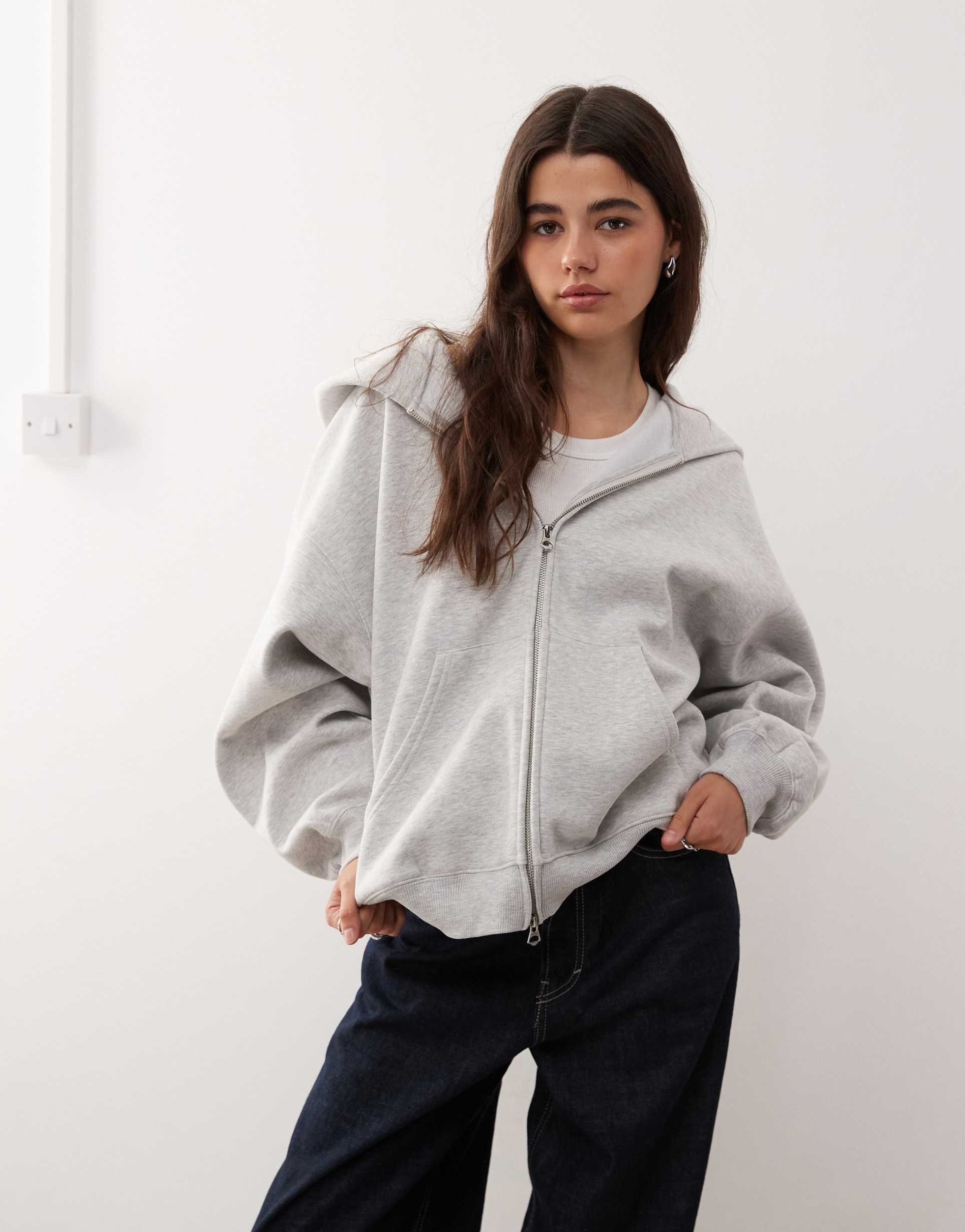 WEEKDAY OVERSIZED HEAVYWEIGHT ZIP THROUGH JERSEY HOODIE IN GRAY MELANGE