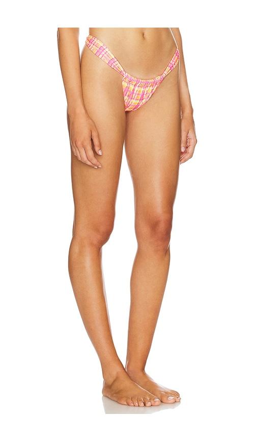 KULANI KINIS RUCHED THONG BIKINI BOTTOM IN PINK.