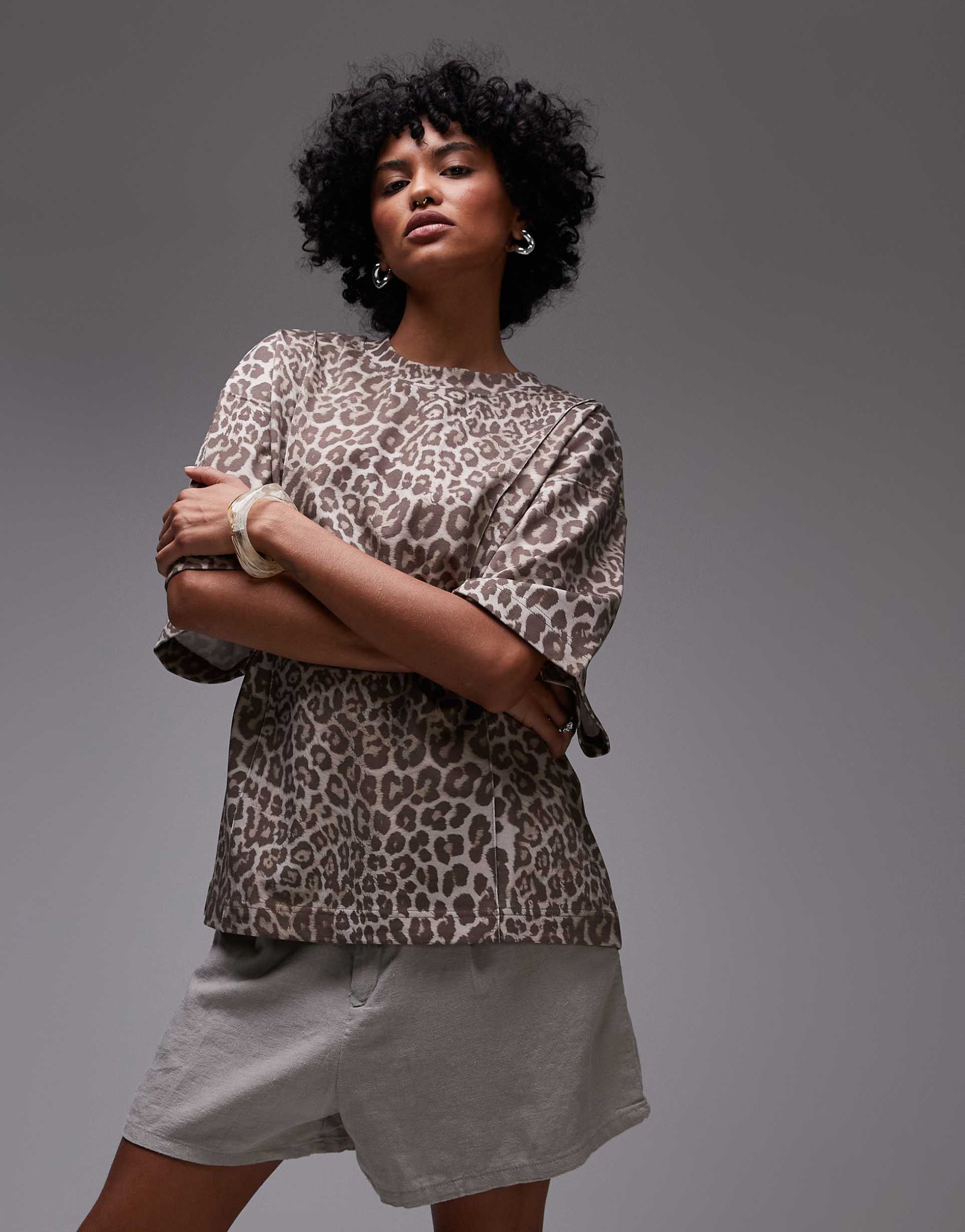 & OTHER STORIES JERSEY RELAXED T-SHIRT WITH PANEL DETAIL IN LEOPARD PRINT