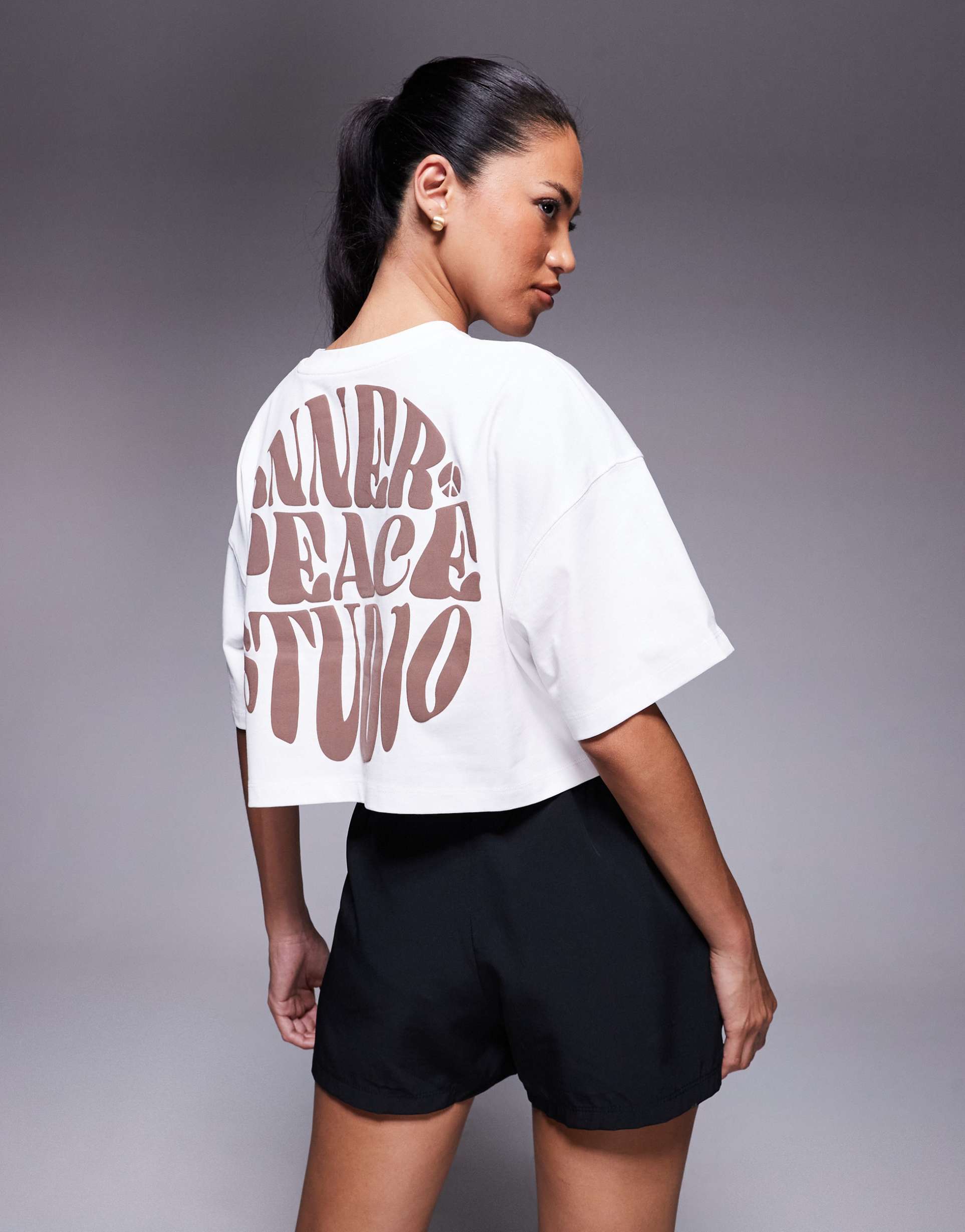 4505 ICON HEAVYWEIGHT COTTON CROPPED T-SHIRT WITH BACK PRINT AND QUICK DRY FINISH IN WHITE