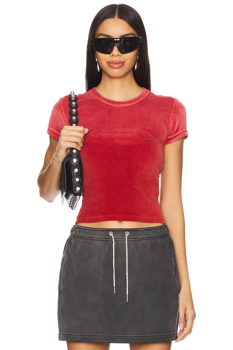 Midweight terrycloth fabric lends a textured feel to this cropped baby tee in a vibrant matte red hue. Designed with a fitted silhouette, classic crew neck, and half sleeves, it offers a minimalist yet chic aesthetic. The pullover style ensures easy wear, while the comfortable fabric blend of cotton, polyester, and elastane makes it ideal for all-weather casual and streetwear occasions. Perfect for everyday wear, brunch dates, or relaxed outings, this versatile piece pairs effortlessly with skirts or jeans for a modern, clean look.