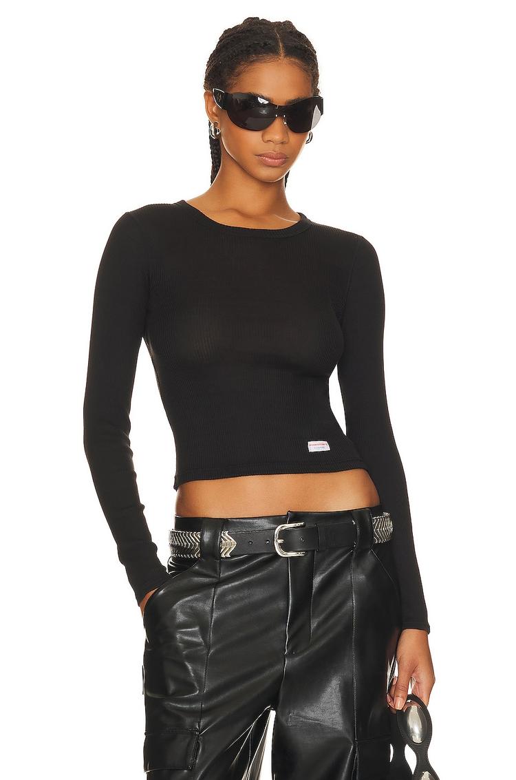 Sleek and versatile, this fitted cropped black tank features a classic crew neck and long regular sleeves crafted from soft ribbed cotton jersey. The racerback styling adds a sporty edge while maintaining a minimalist, casual chic vibe. Its breathable fabric and streamlined silhouette make it perfect for everyday wear, streetwear looks, or casual outings, offering effortless style and comfort in all weather conditions.