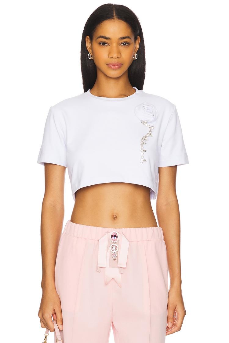 CRYSTAL ROSETTE CROPPED TEE