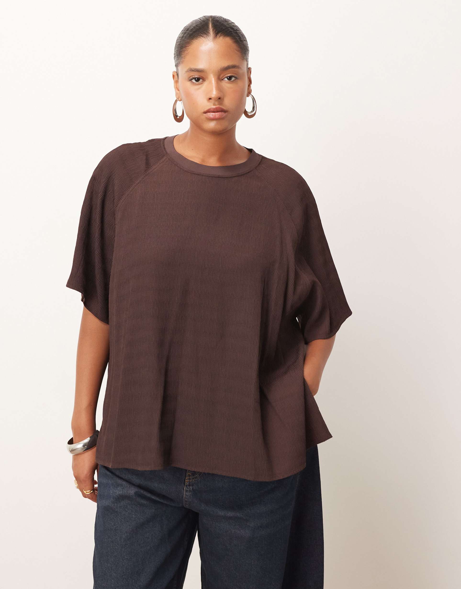 ARRANGE CURVE HYBRID TEXTURED RAGLAN TEE IN CHOCOLATE