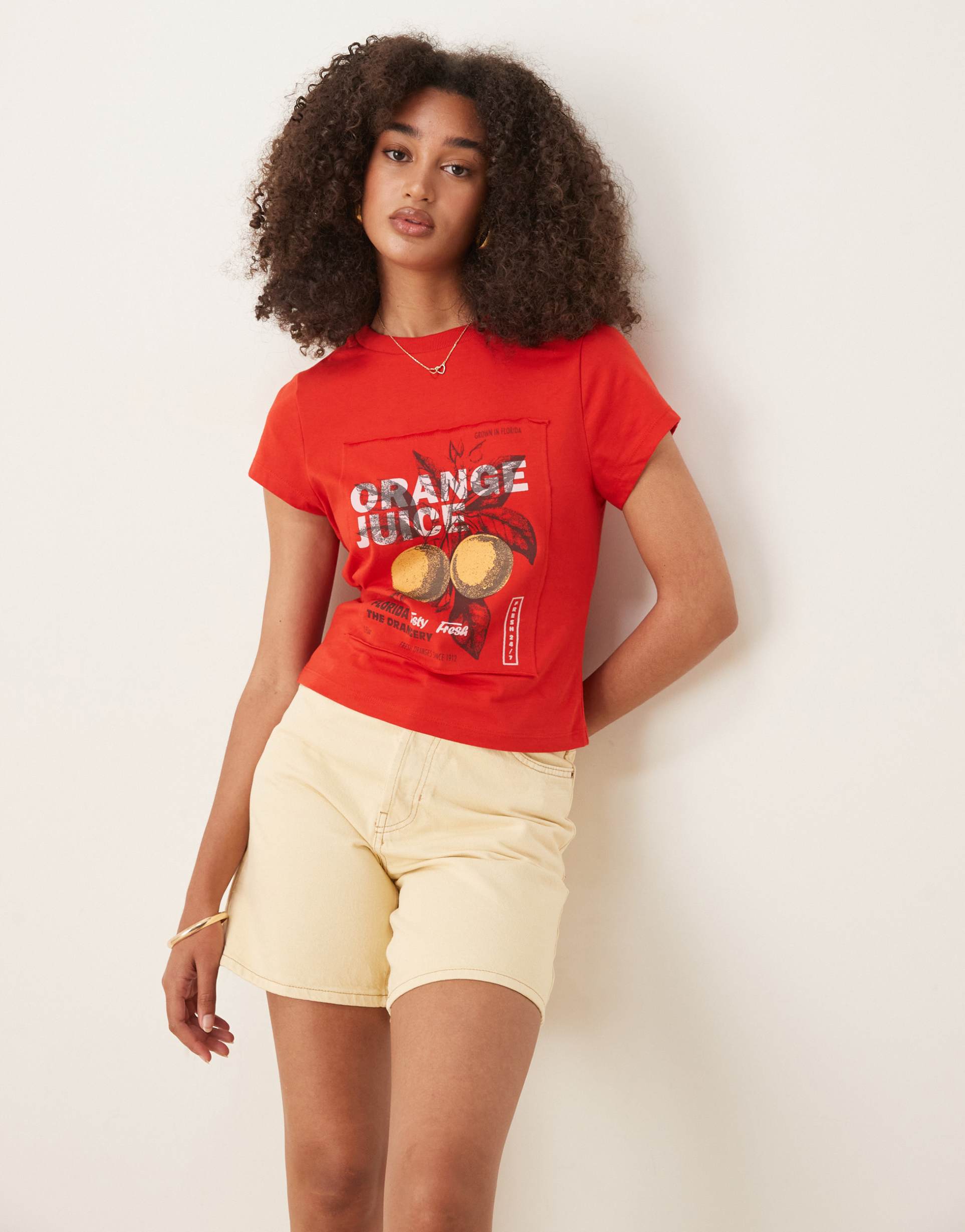 ASOS DESIGN BABY TEE WITH ORANGES APPLIQUE IN RED