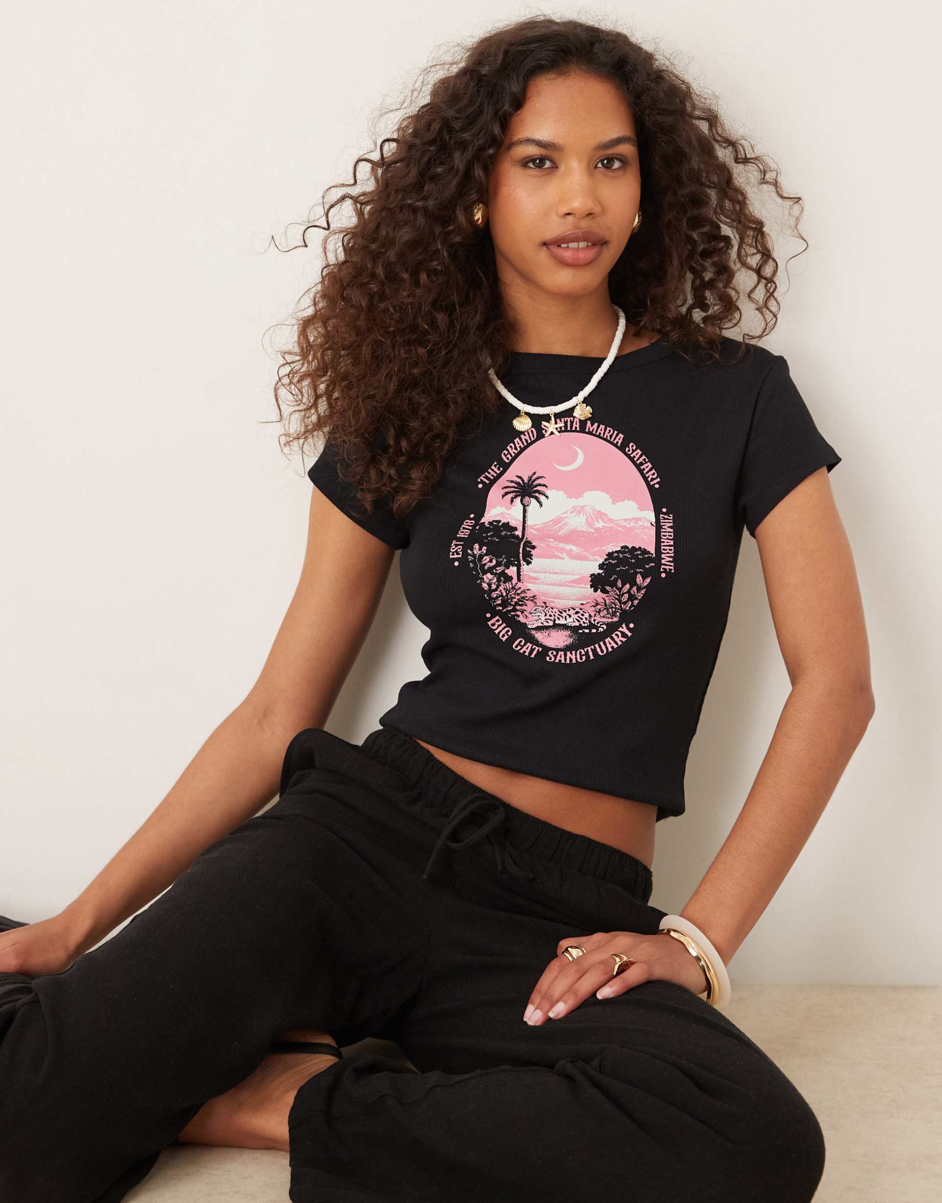 ASOS DESIGN BABY TEE WITH PINK SAFARI GRAPHIC IN BLACK