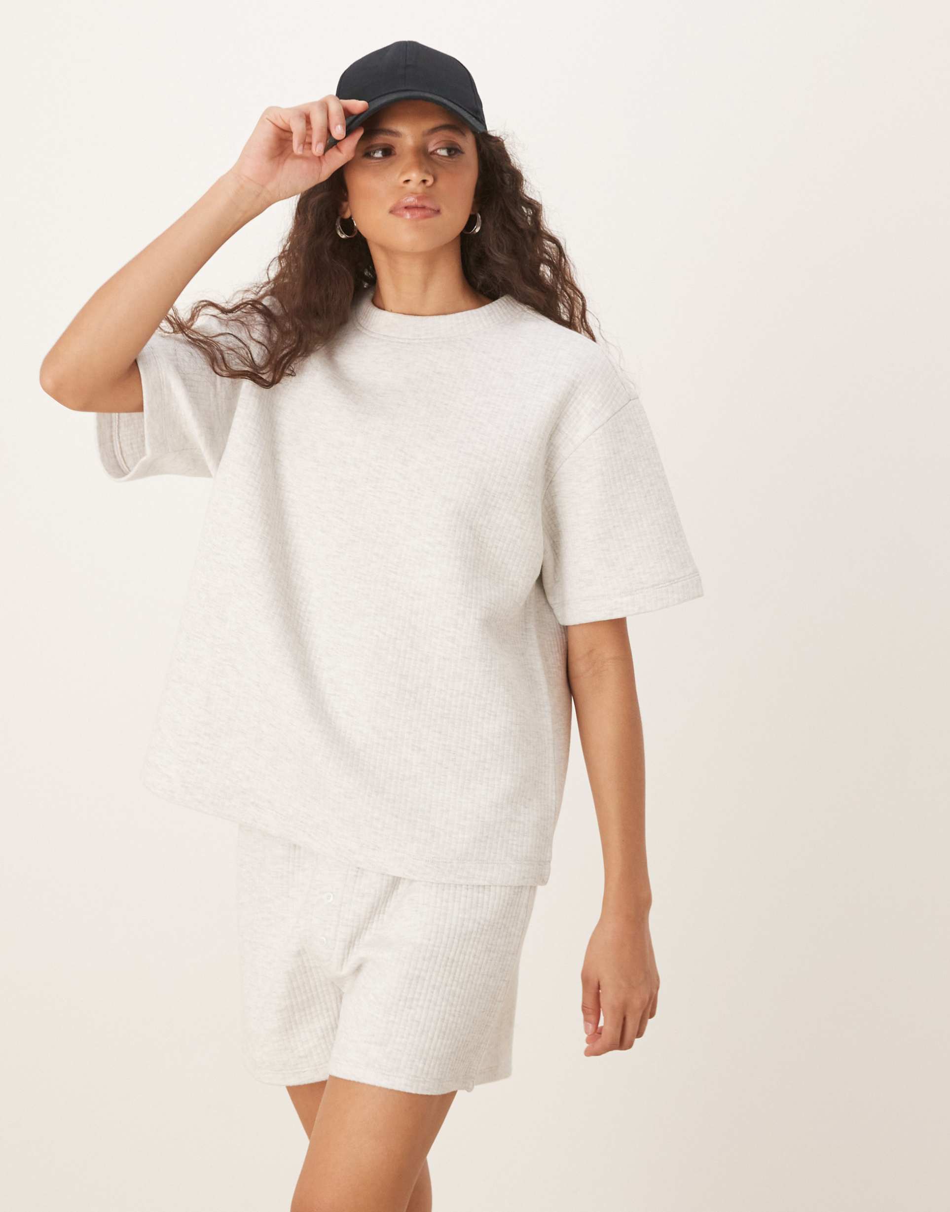 ASOS DESIGN CHUNKY RIBBED SHORT SLEEVE T-SHIRT IN GRAY HEATHER - PART OF A SET