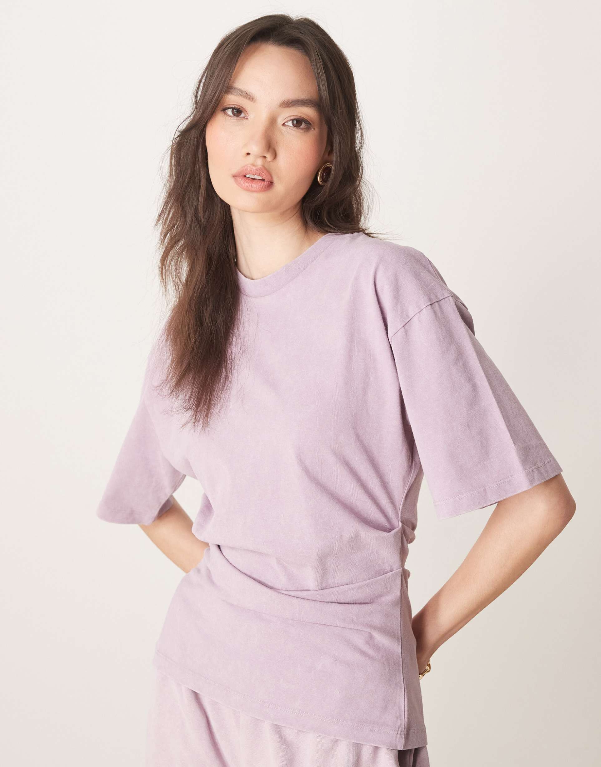 ASOS DESIGN CORSET WAIST T-SHIRT IN WASHED MAUVE