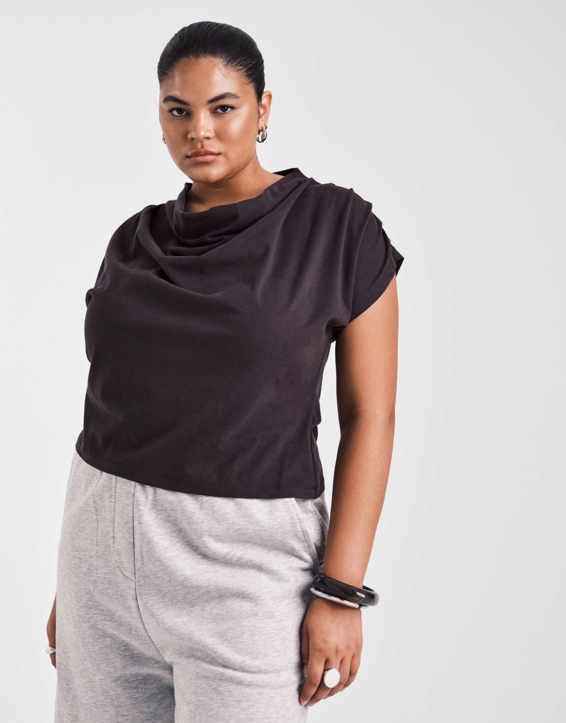 ASOS DESIGN CURVE COWL DRAPE DETAIL TEE IN CHOCOLATE