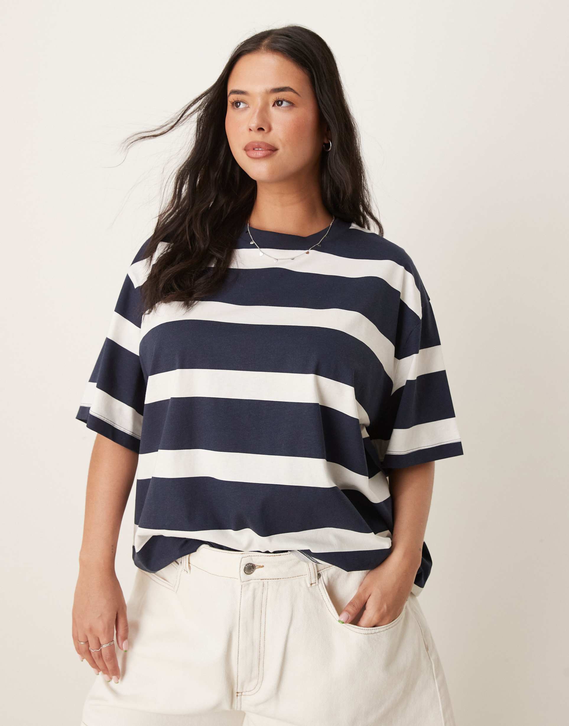 ASOS DESIGN CURVE OVERSIZED T-SHIRT IN NAVY AND WHITE STRIPES