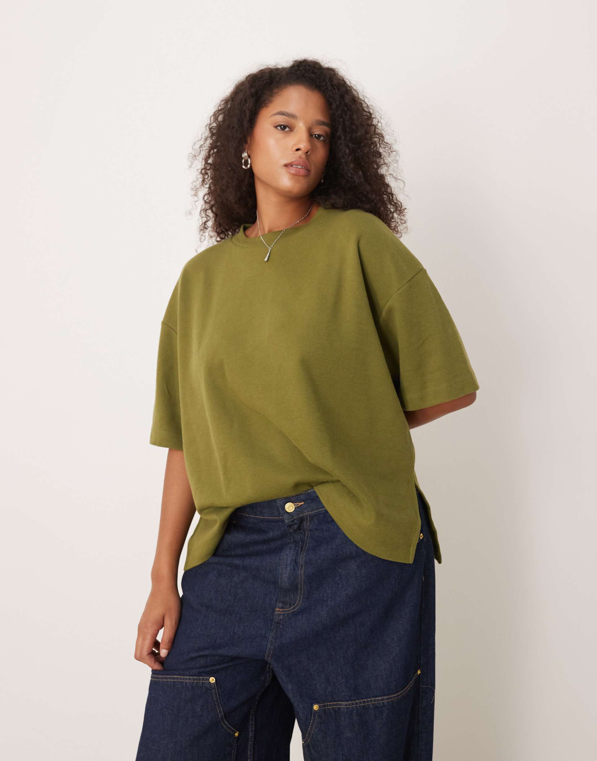 ASOS DESIGN CURVE SUPERSOFT BOXY T-SHIRT IN KHAKI