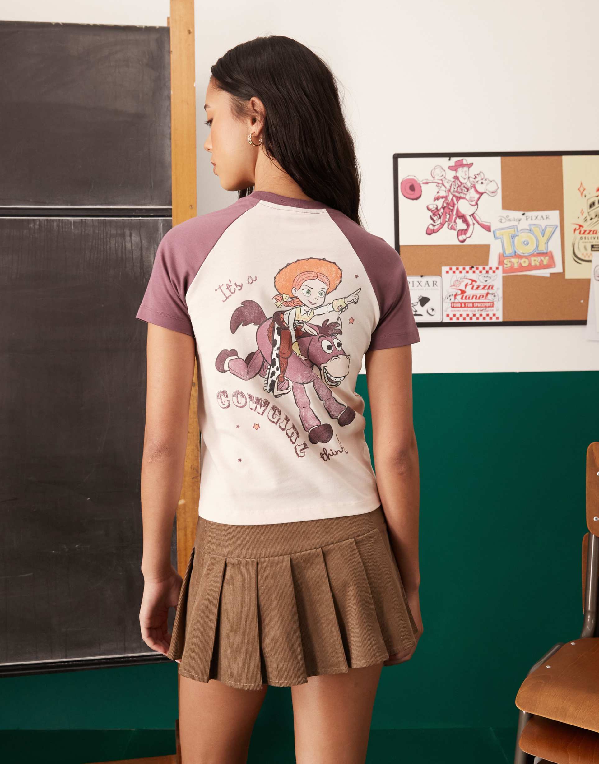 ASOS DESIGN DISNEY PIXAR CROPPED T-SHIRT WITH TOY STORY'S JESSIE EMBROIDERED PRINT IN BABY PINK