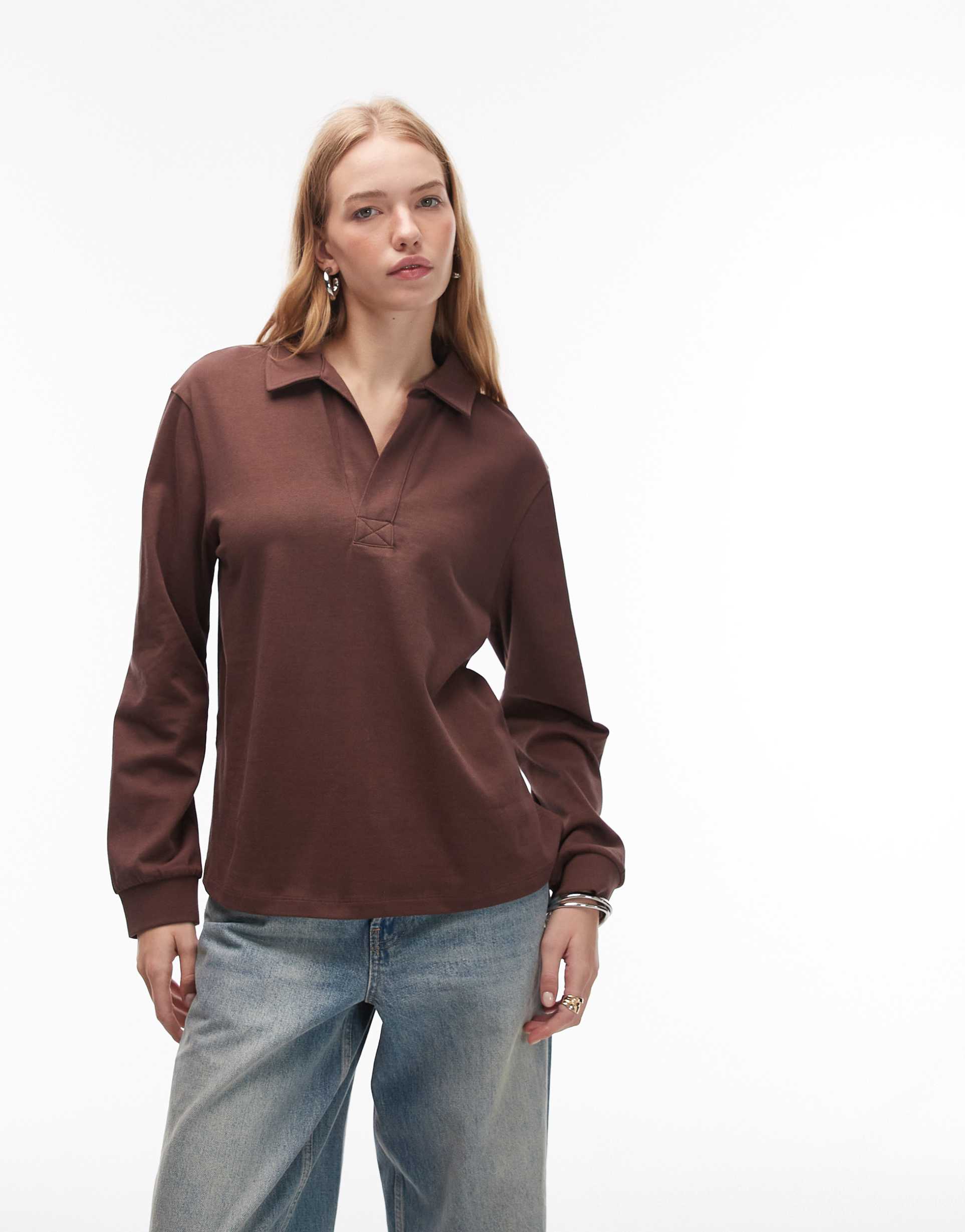 ASOS DESIGN HEAVYWEIGHT RUGBY COLLAR LONG SLEEVE TEE IN CHOCOLATE