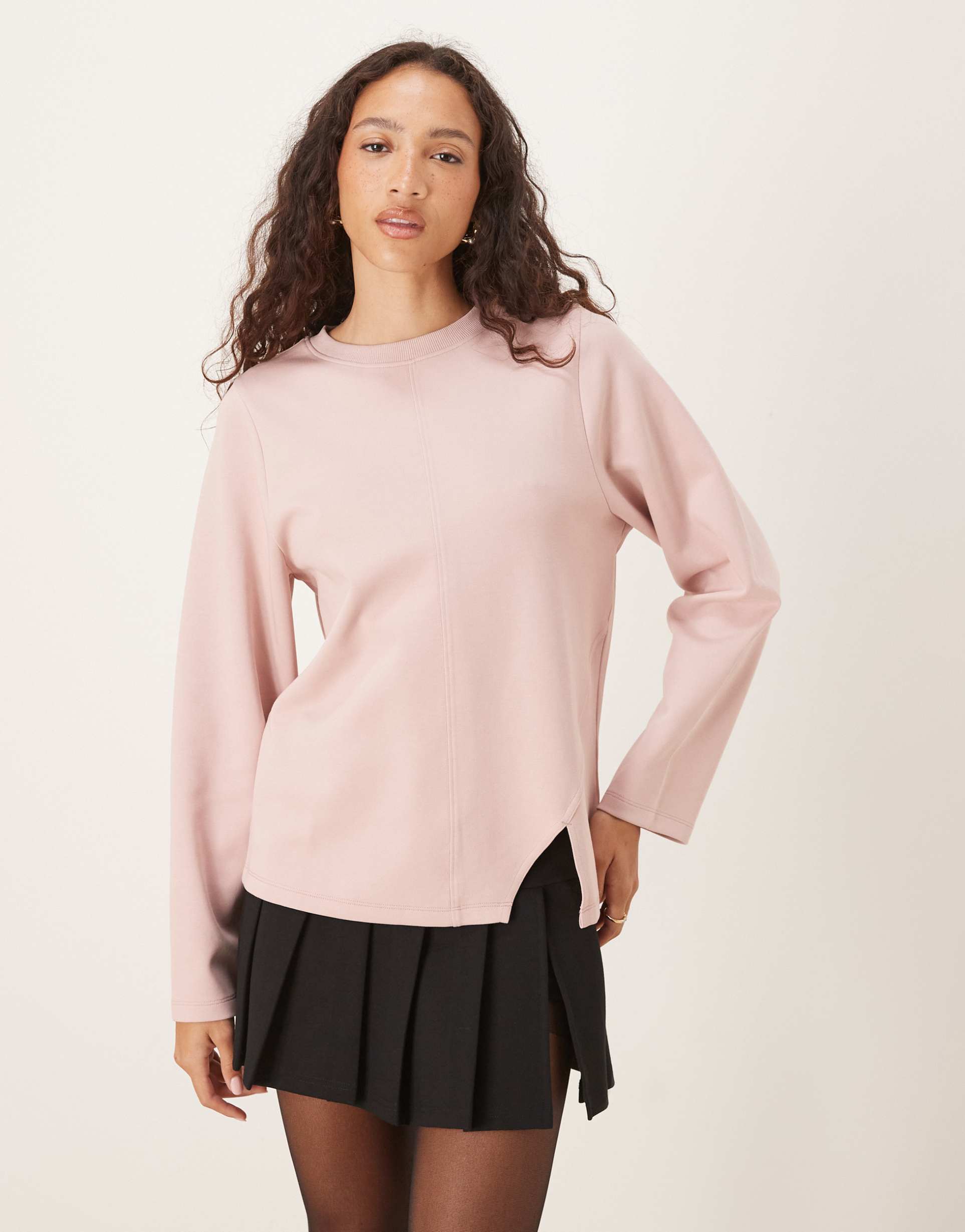 ASOS DESIGN INTERLOCK FRONT SEAM LONG SLEEVE T-SHIRT IN PINK