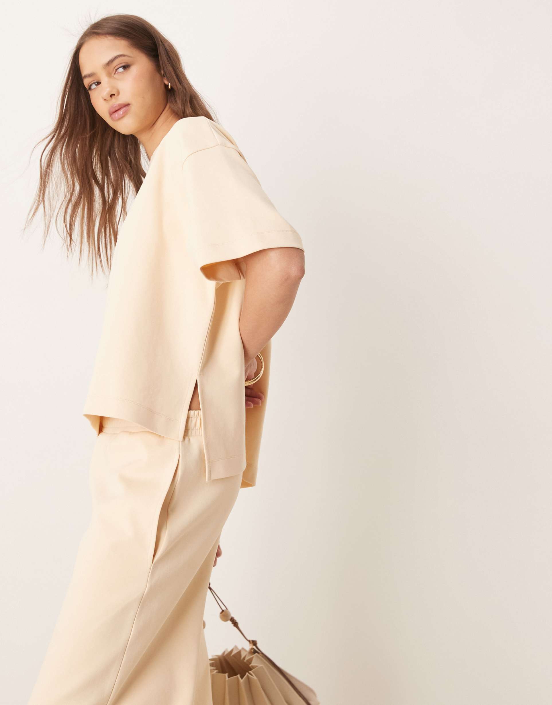 ASOS DESIGN INTERLOCK SPLIT SIDE TEE IN BUTTERMILK - PART OF A SET