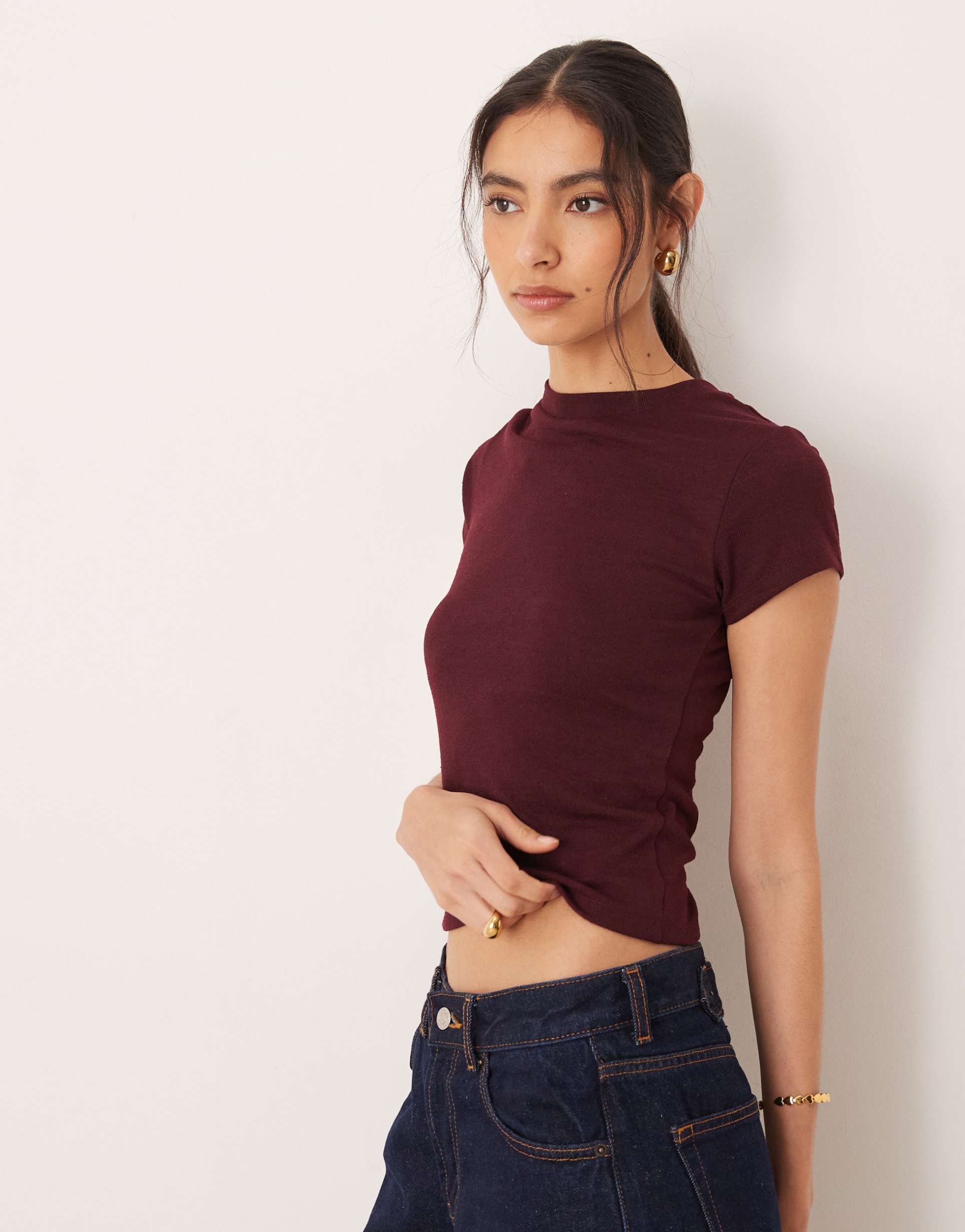 ASOS DESIGN KNIT LOOK BABY TEE IN BERRY - PART OF A SET