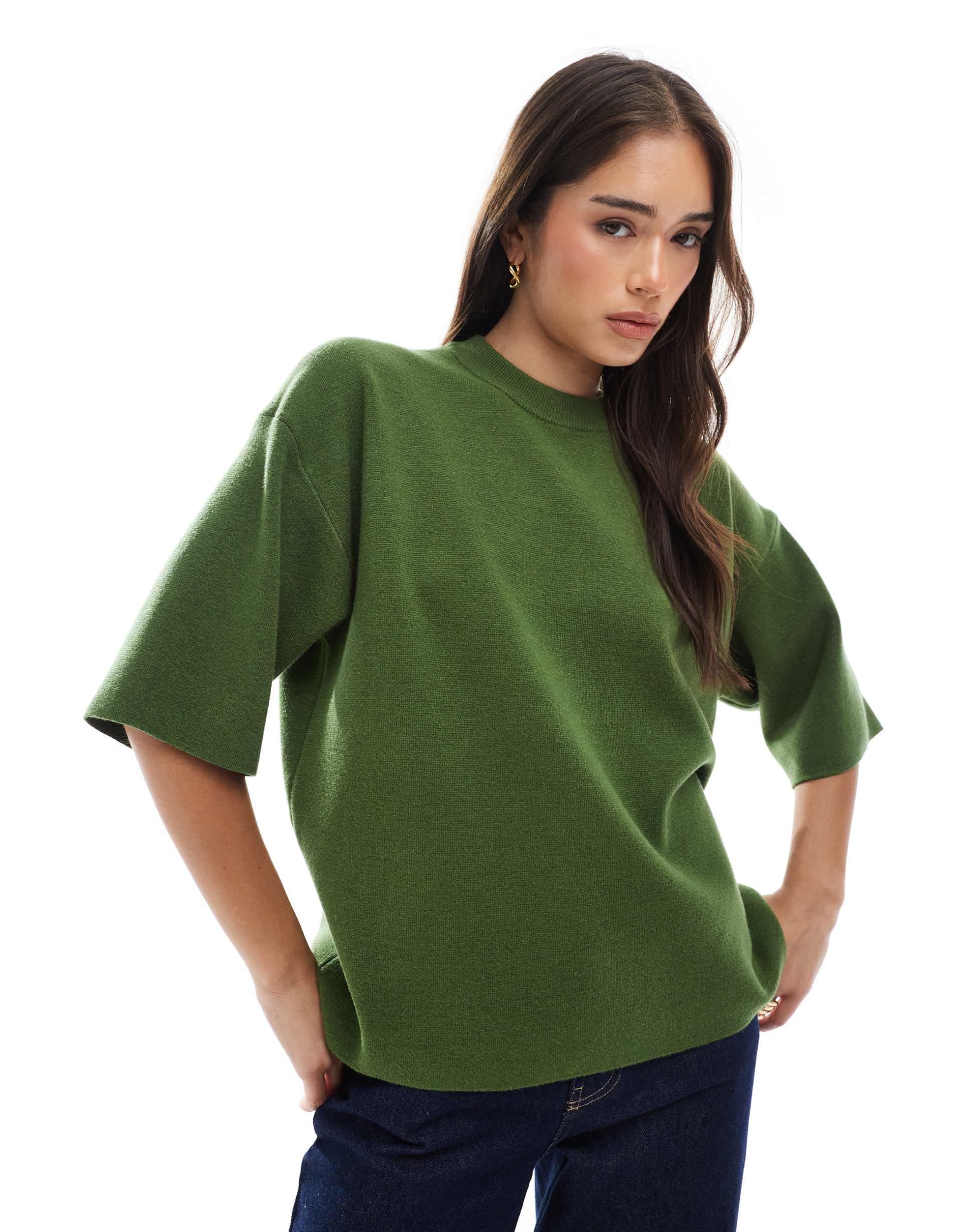 ASOS DESIGN KNIT STRUCTURED OVERSIZED T-SHIRT IN OLIVE