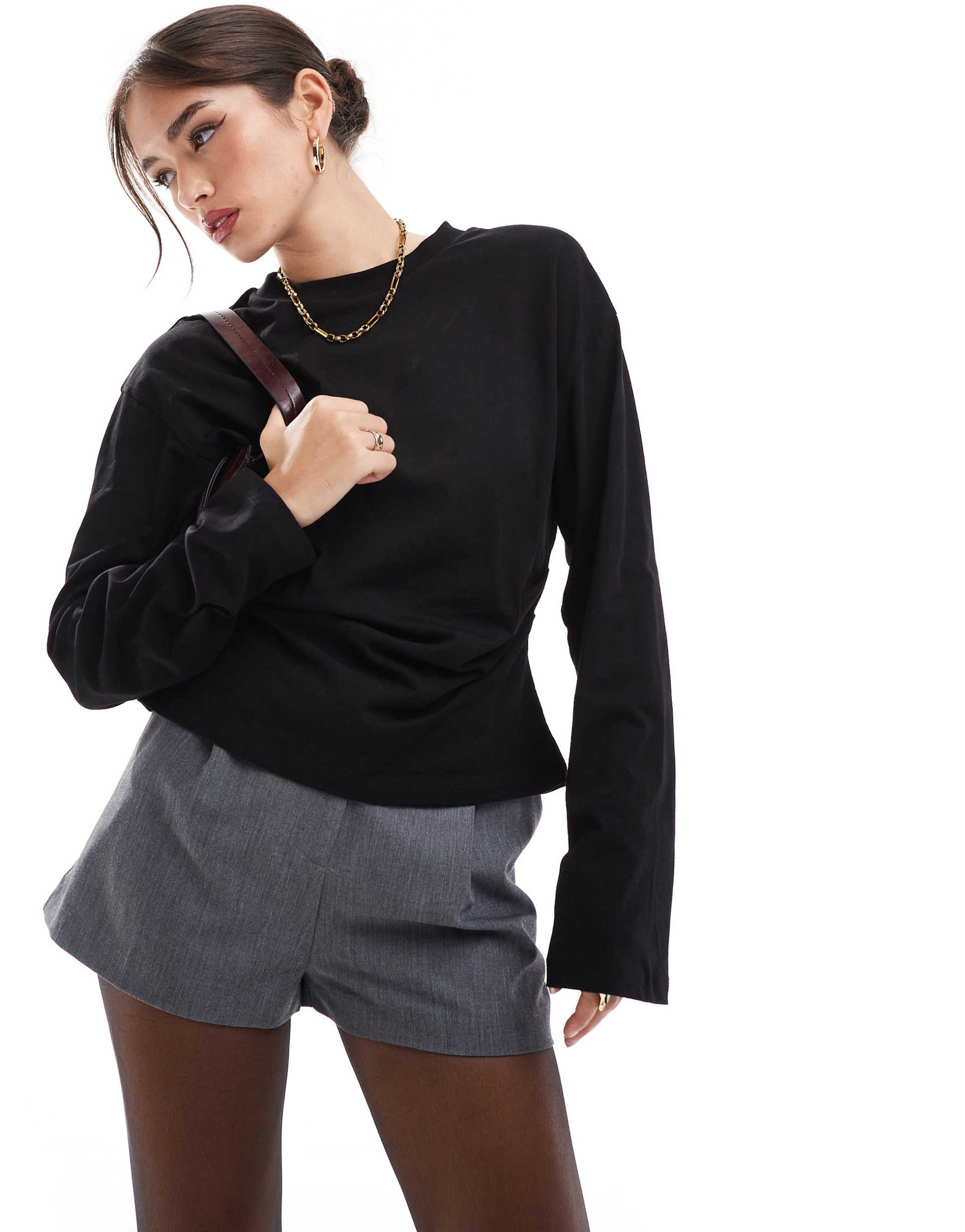 ASOS DESIGN LONG SLEEVE CORSET WAIST TEE IN BLACK