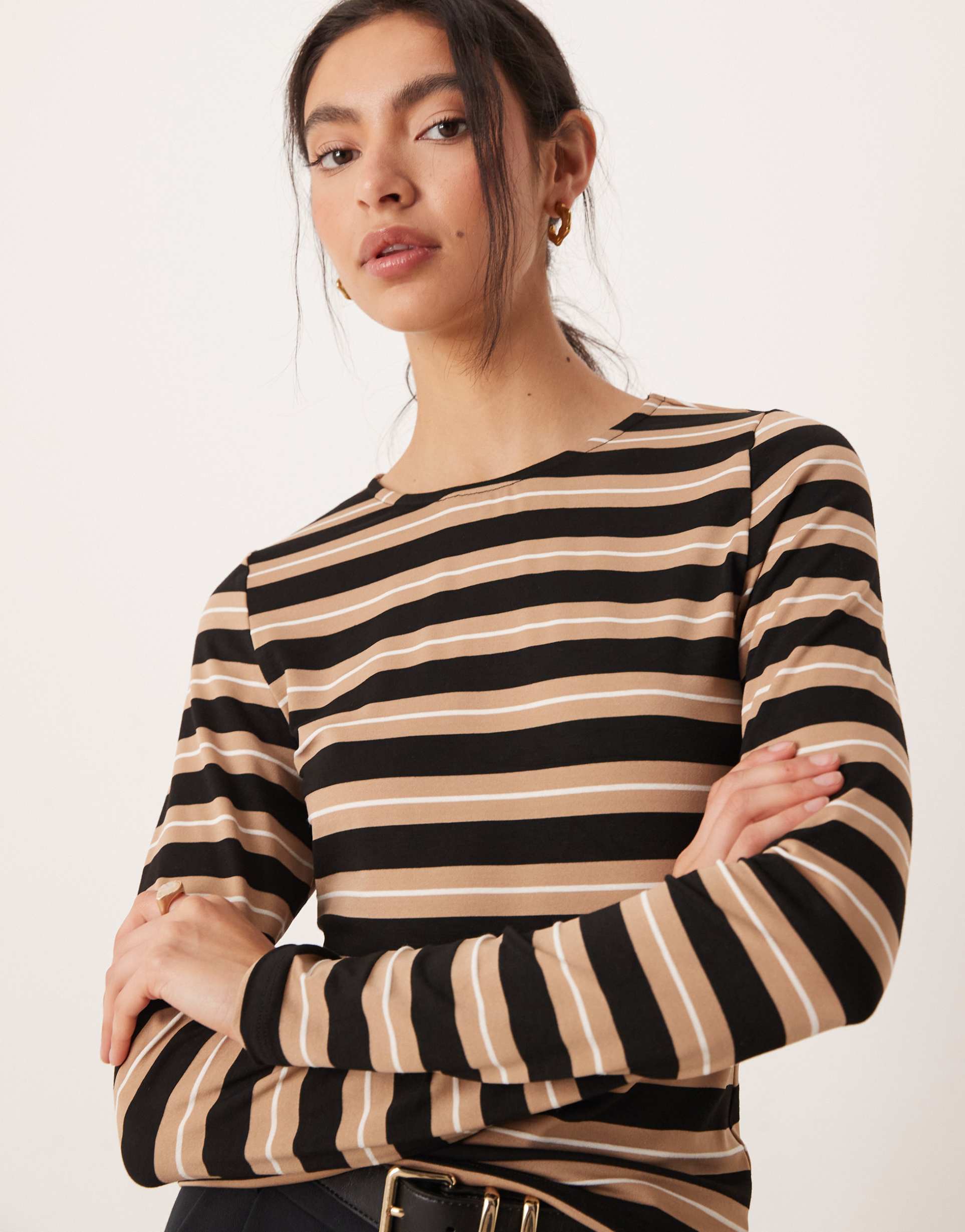 ASOS DESIGN LONG SLEEVE SHRUNKEN TEE IN NEUTRAL STRIPE
