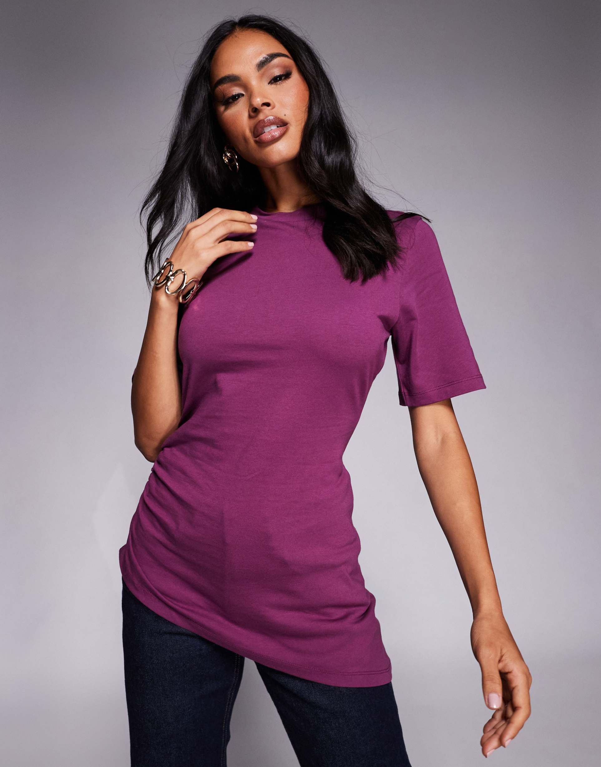 ASOS DESIGN LONGLINE CINCHED ASYMMETRIC TEE IN FIG