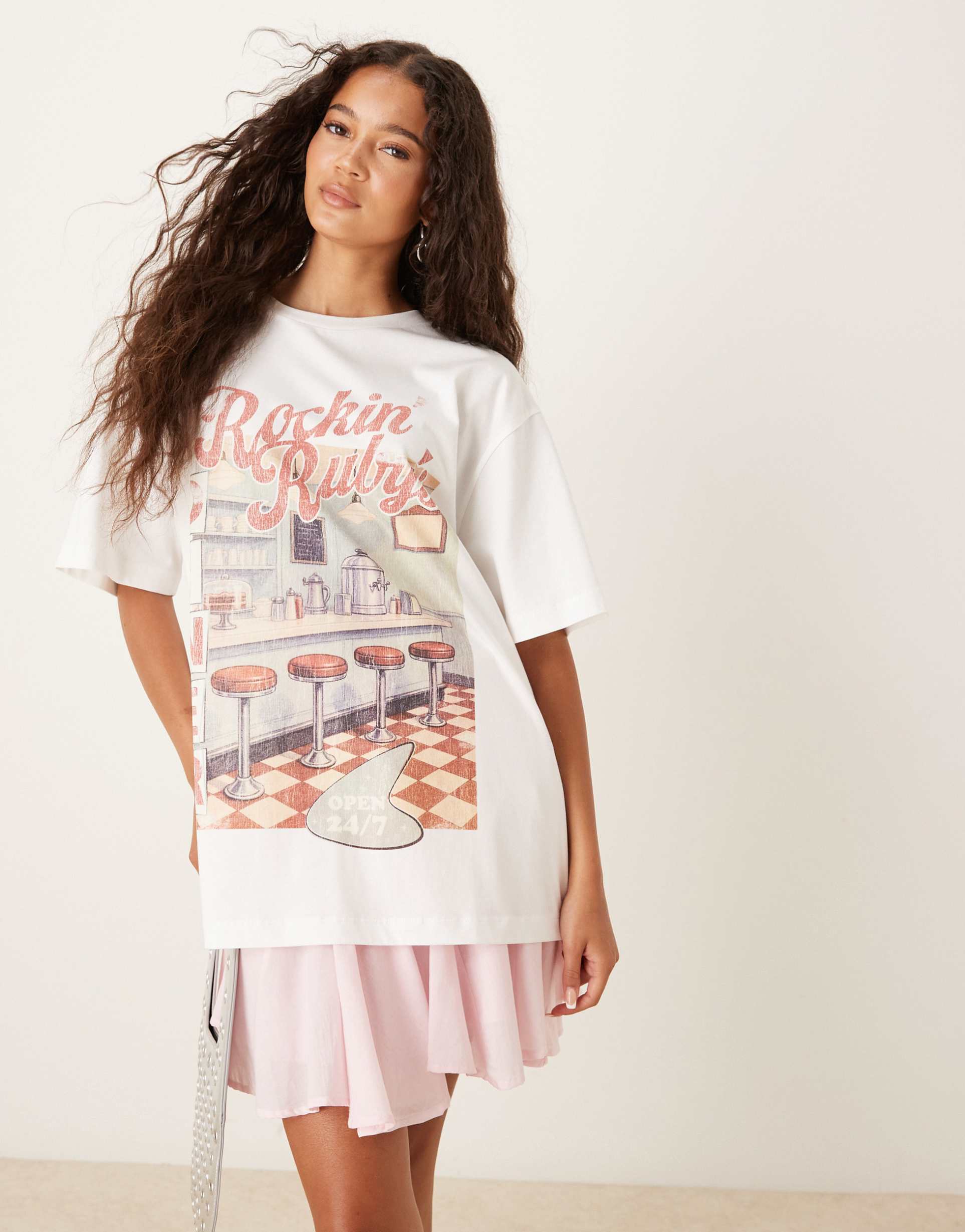 ASOS DESIGN OVERSIZED T-SHIRT WITH AMERICAN DINER GRAPHIC IN CREAM