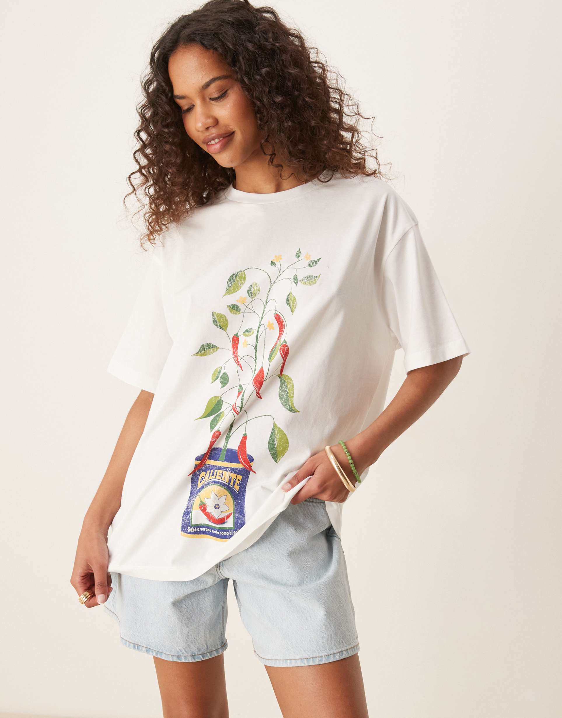 ASOS DESIGN OVERSIZED T-SHIRT WITH CHILLI PLANT GRAPHIC IN COCONUT MILK