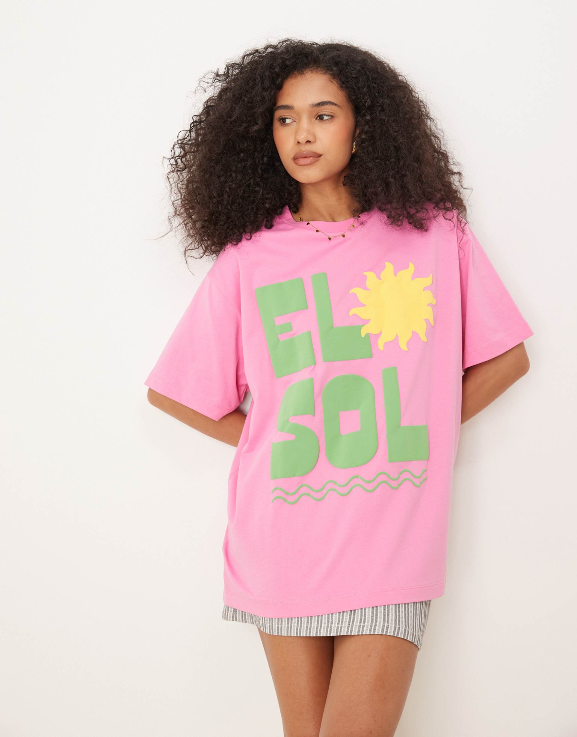 ASOS DESIGN OVERSIZED T-SHIRT WITH EL SOL SUN PUFF PRINT IN PINK