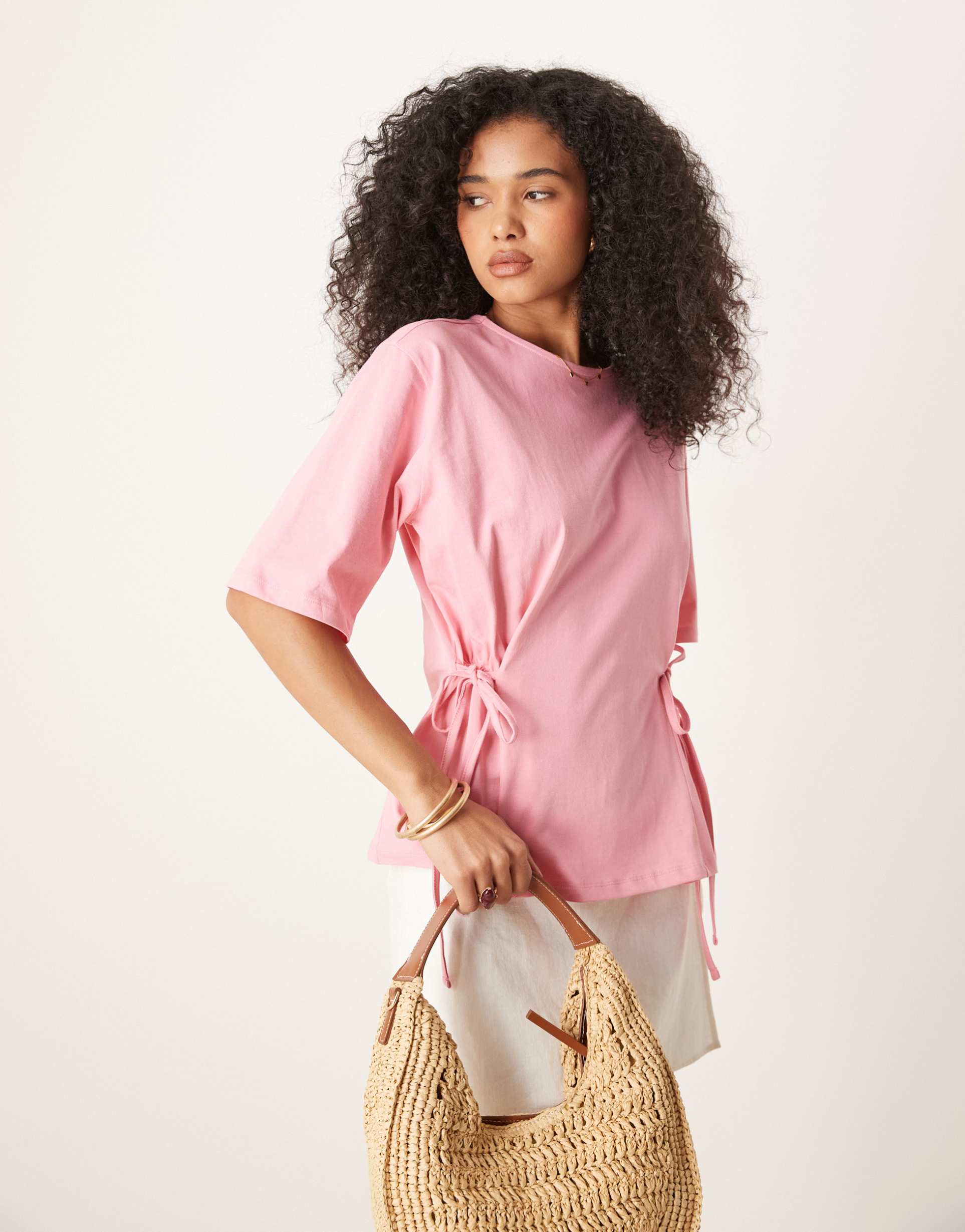 ASOS DESIGN OVERSIZED TEE WITH TIE DETAIL IN PINK
