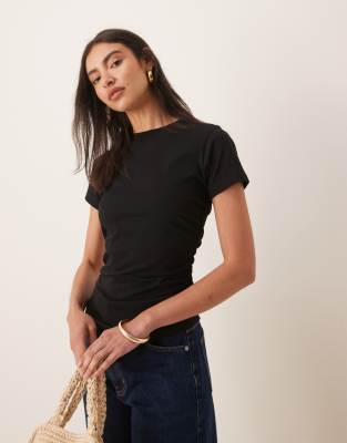 ASOS DESIGN RUCHED SIDE ASYMMETRIC T-SHIRT IN BLACK