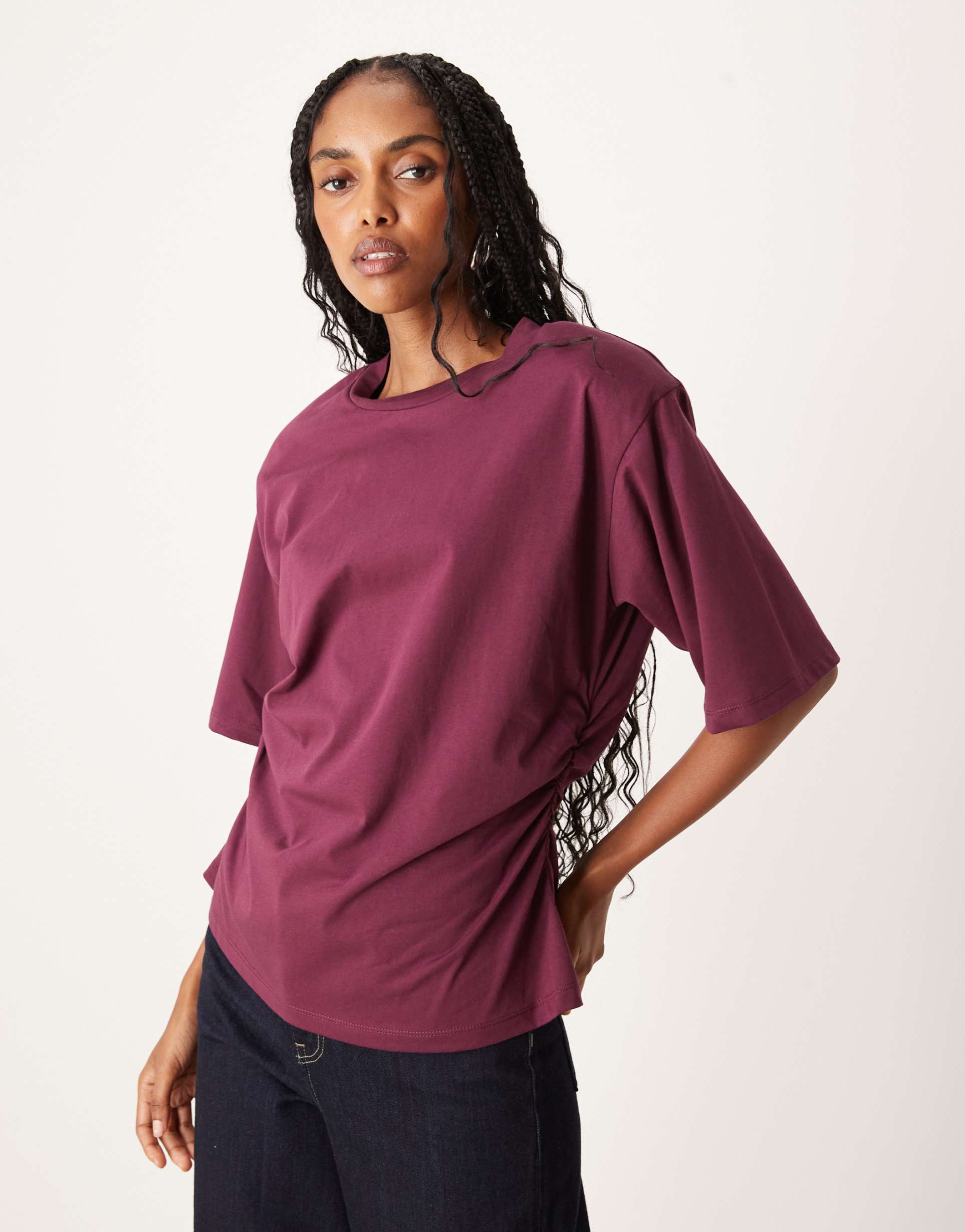 ASOS DESIGN SHOULDER PADS CINCHED TEE IN FIG