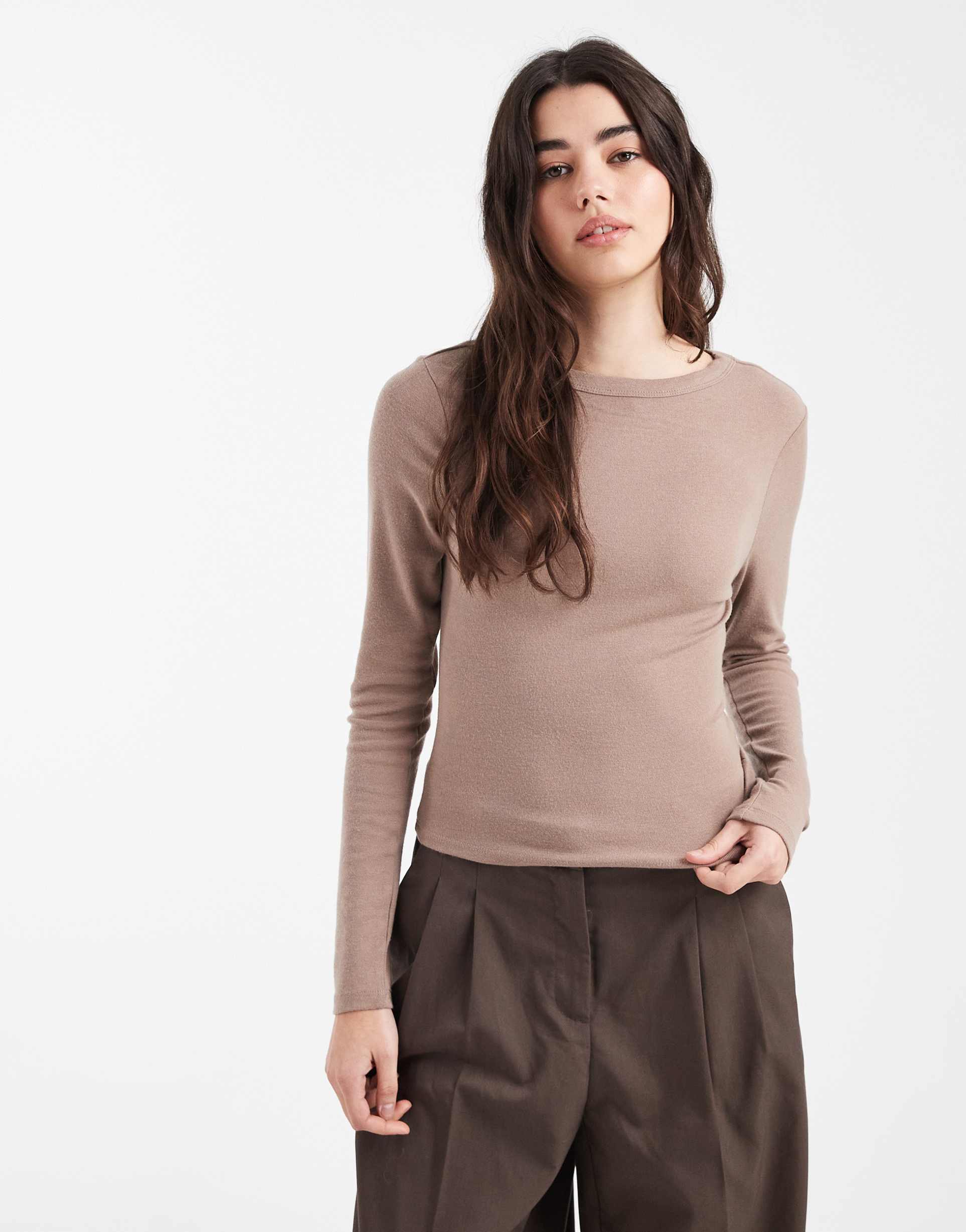 ASOS DESIGN SOFT LONG SLEEVE SHRUNKEN TEE IN MOCHA